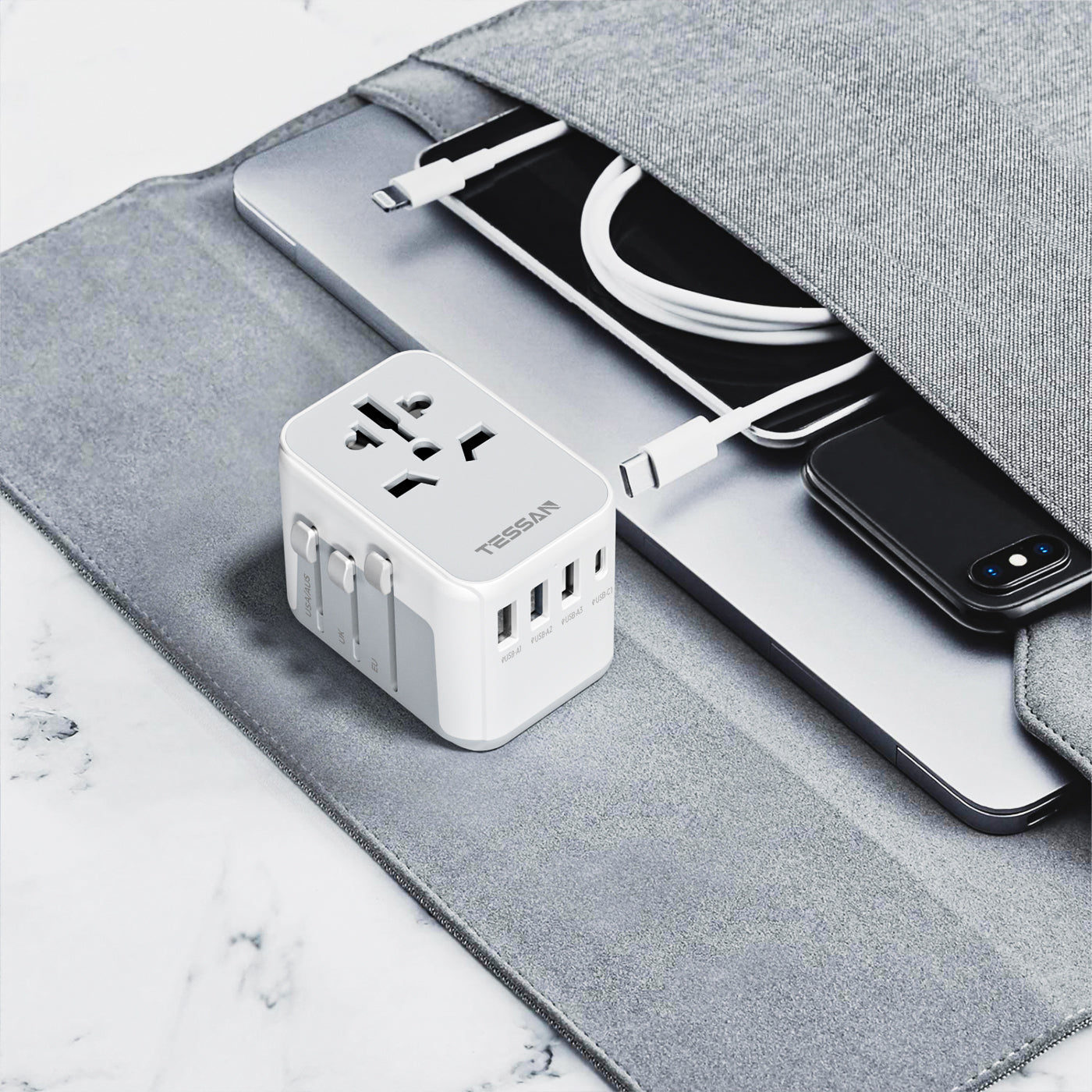 Our all-in-one adapter has 4 different plugs built in which cover over 150 countries.