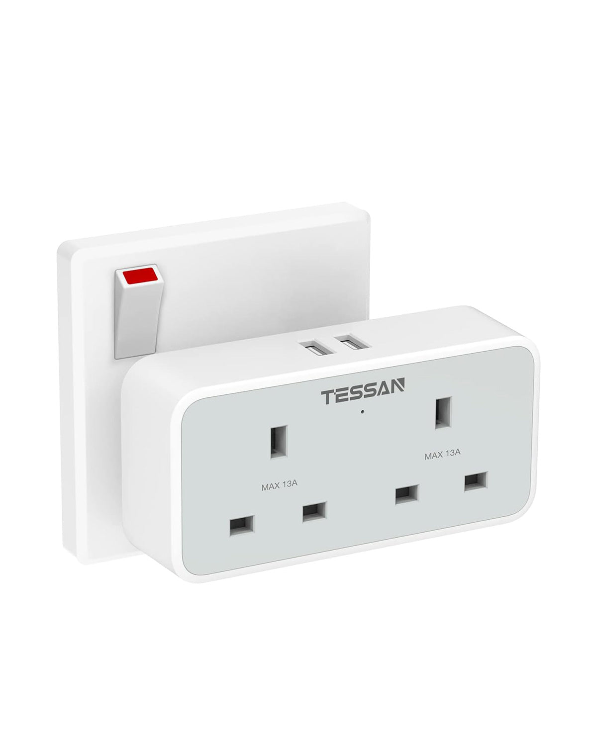 Double Plug Adaptor with 2 USB 2 AC outlets and 2 USB ports About This Item: Compact and Lightweight: TESSAN double plug adaptor has a lightweight design, which charges 4...